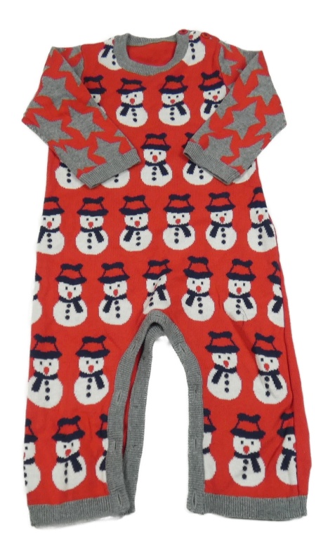 Červený pletený overal so sněhuláky George