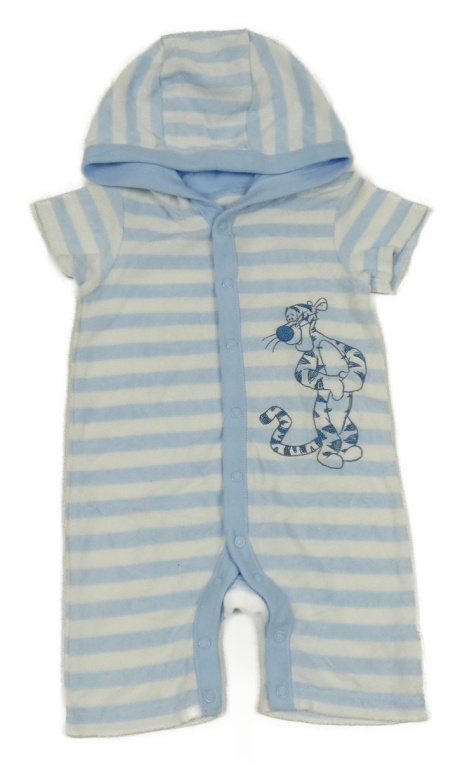 Bielo-modrý pruhovaný froté kraťasový overal s tigrom a kapucňou George