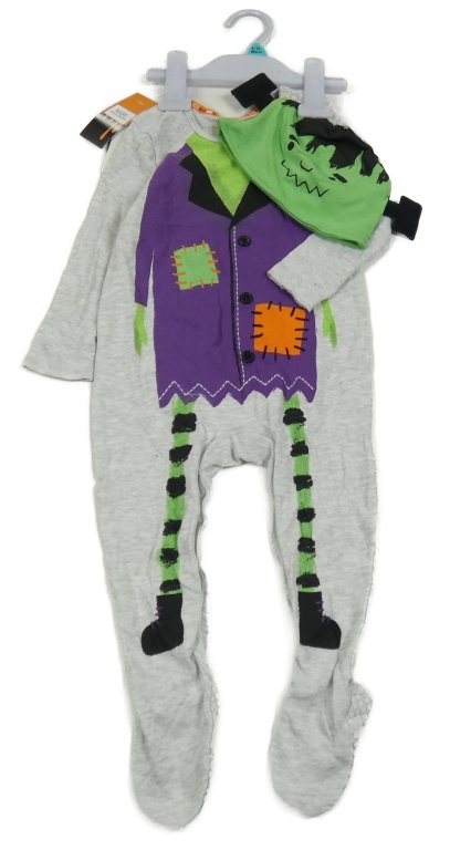 Nové - 2set - Šedo-fialovo-zelený overal + bavlněná čepice - Frankenstein F&F