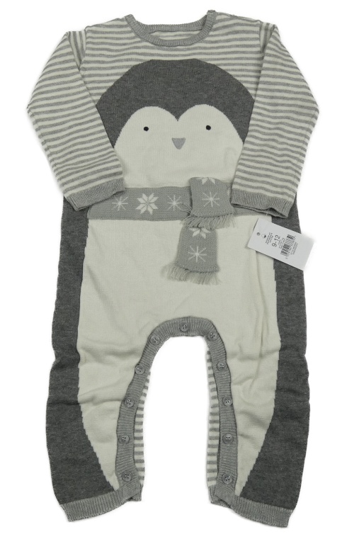 Nové - sivo-biely pruhovaný úpletový overal s tučňákem George