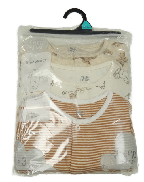 Nové - 3x overal - béžový melírovaný s medvědy + smetanový s medvědy + hnědo-smetanový pruhovaný F&F