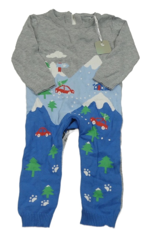 Nové - Sivo-modrý svetrový overal s autíčky a stromami Tu