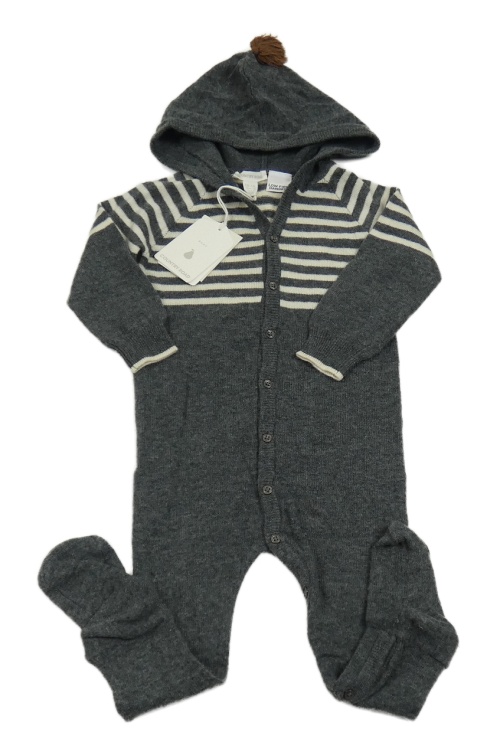 -Nové Sivo-biely pruhovaný pletený overal s kapucňou