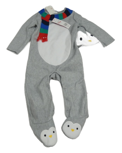 Nové - 2set - Šedý melírovaný fleecový overal - čepice - tučňák F&F