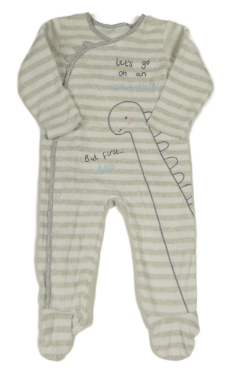 Svetlošedá -biely pruhovaný fleecový overal s dinosaurom George