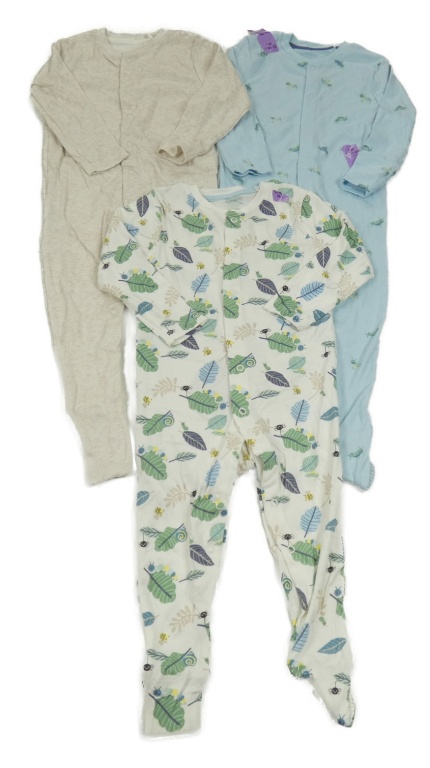 Nové - 3x - Overal - Bílý so zvieratkami a listy, světlebéžový melírovaný, svetlomodrý s lučními kobylkami PRIMARK