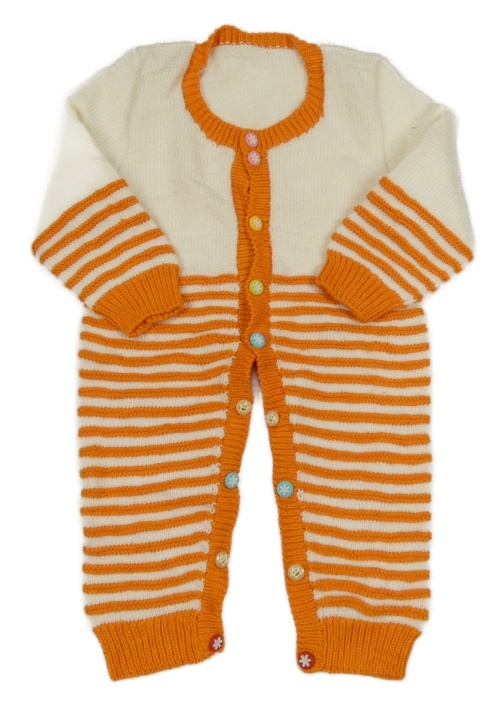 Smetanovo-oranžový pletený overal s pruhmi
