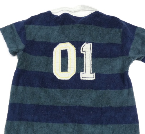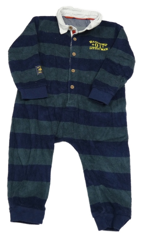 Tmavomodro-sivý pruhovaný froté overal s nápisom George