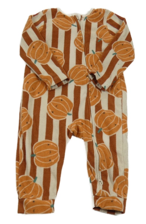 Béžovo-hnedý pruhovaný fleecový overal s dýněmi Tu