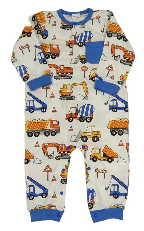 Biely overal so stavebními stroji a vreckom