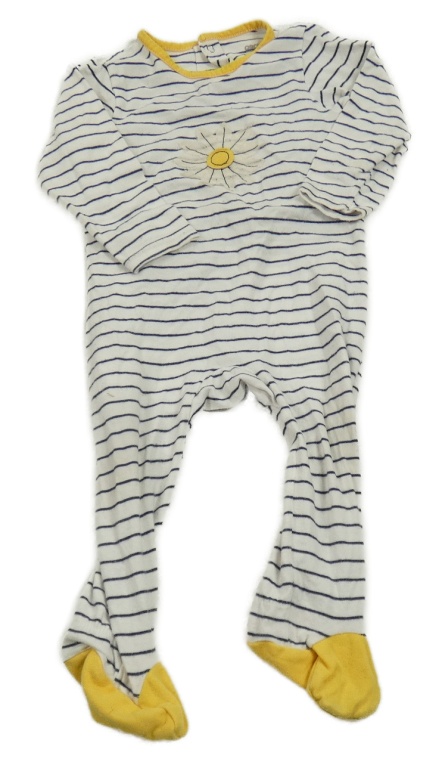 Bielo-tmavomodrý pruhovaný overal s kvetinou orchestra