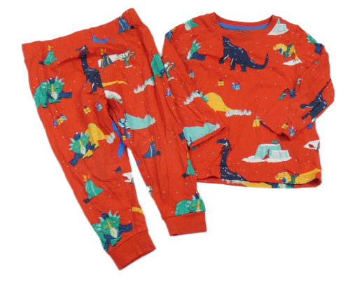 Červené pyžama s dinosaurami s vánočním motívom M&S