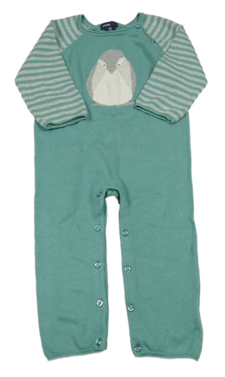 Zeleno-sivý svetrový overal s pruhmi a tučňákem GAP