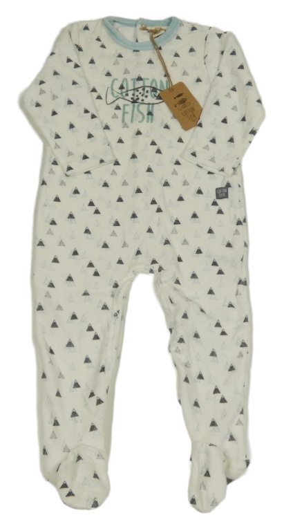 Nové - bielo-svetlomodrý vzorovaný zamatový overal s rybou COTTON FISH