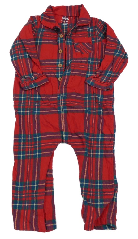Červeno-zelený kockovaný pyžamový overal Tu