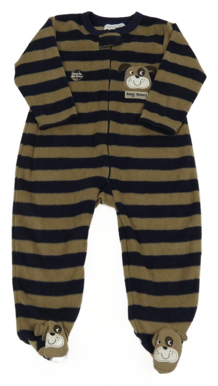 Nové - Tmavomodro-hnedý pruhovaný fleecový overal s pejsky Early Days