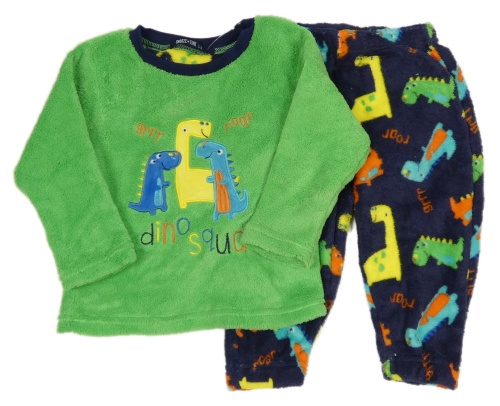 Zeleno-tmavomodré chlpaté pyžama s dinosaurami