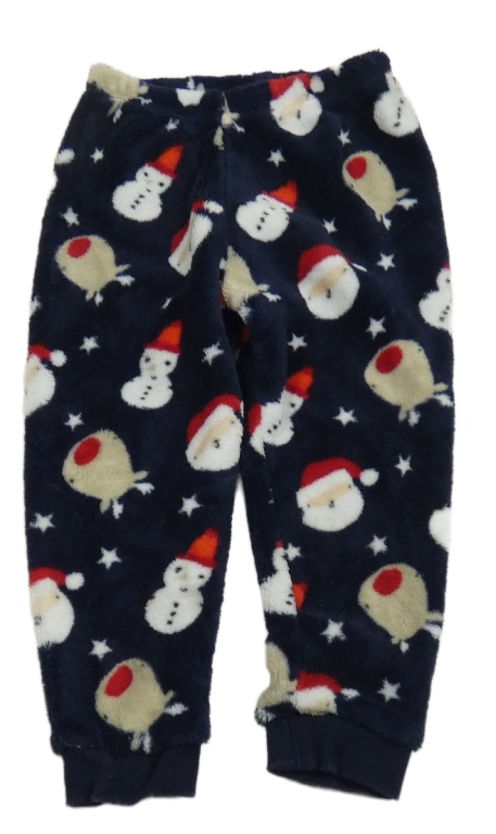 Tmavomodré chlpaté pyžamové nohavice s vánočními obrázky Miniclub