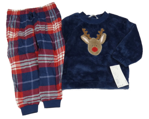 Nové - Tmavomodro-červeno-biele plyšovo/flanelové pyžama so sobom M&S