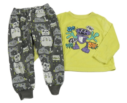 Limetkovo-sivé plyšové pyžama s robotmi Matalan