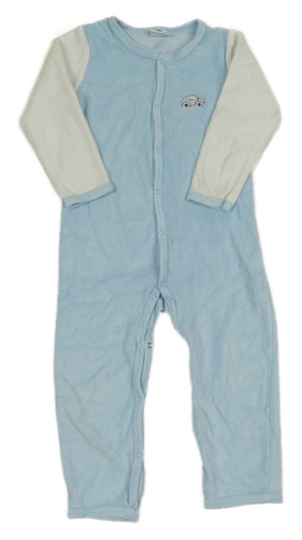 Světlemodro-biely zamatový overal s autíčkom