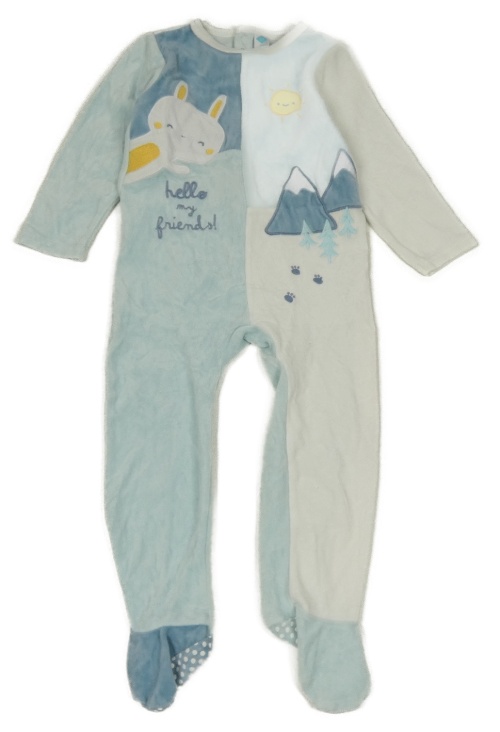 Světlemodro-biely zamatový overal s králikom
