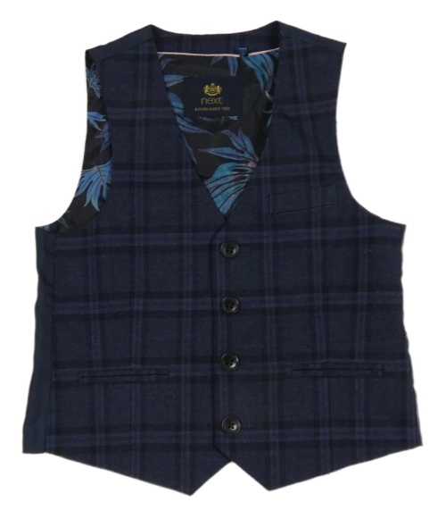 Tmavomodro-čierna kockovaná melírovaná slávnostná vesta Next