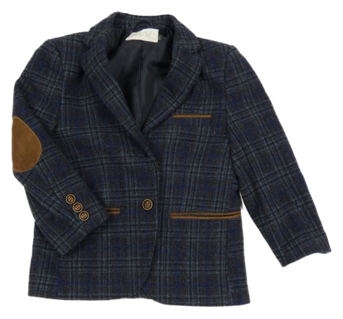 Tmavošedo-modré kockované slávnostné sako