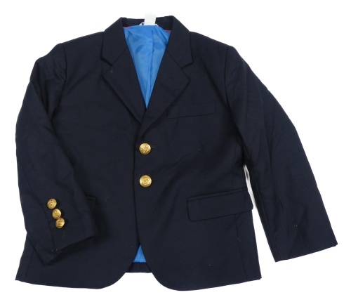 polyester + vlna, v ramenou vycpávky, falešné kapsy, uvnitř modrá podšívka - acetát