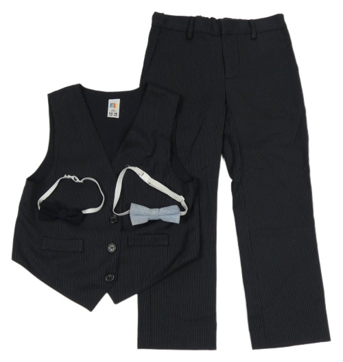 4set- čierna pruhovaná slávnostný vesta+ kalhoty+ 2x motýlok