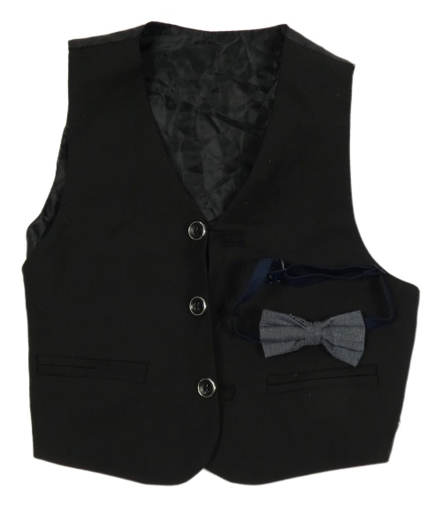 2set - Čierna slávnostný podšitá vesta + tmavomodrý motýlok