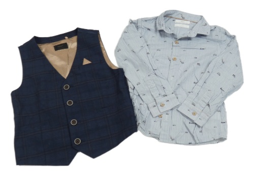 2set - Svetlomodrá prúžkovaná blúzka s auty + tmavomodrá kockovaná vesta Next
