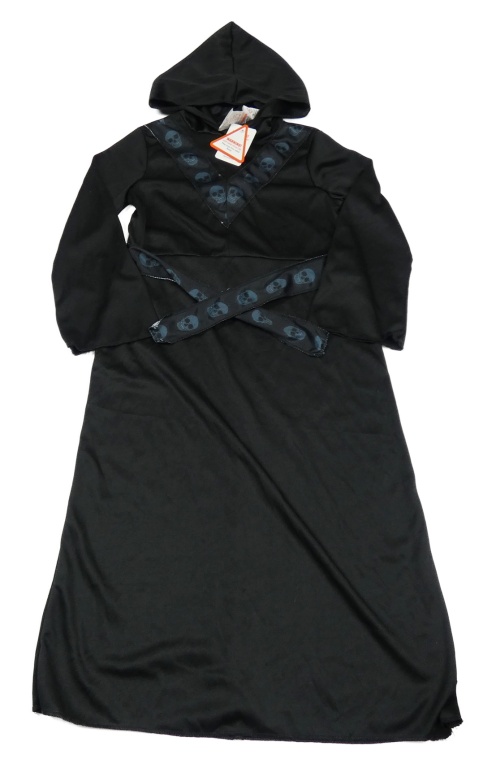 Nové - Kostým - Černý plášť s lebkami a kapucňou