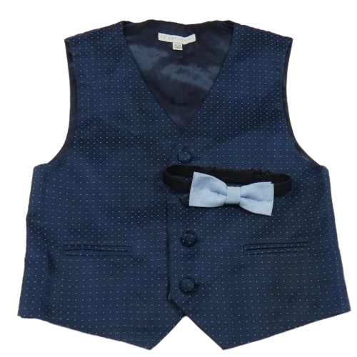 2set - Tmavomodrá vzorovaná spoločenská vesta + motýlok Rocha John Rocha
