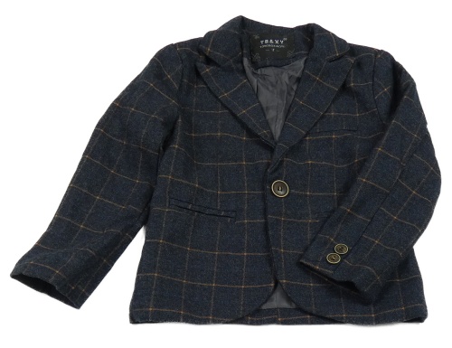 Tmavomodro-hnedé kockované slávnostné sako