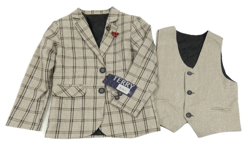 Nové - 2set - Hnedé kockované slávnostná sako + vesta