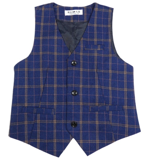 Tmavomodro-okrová kockovaná slávnostná vesta