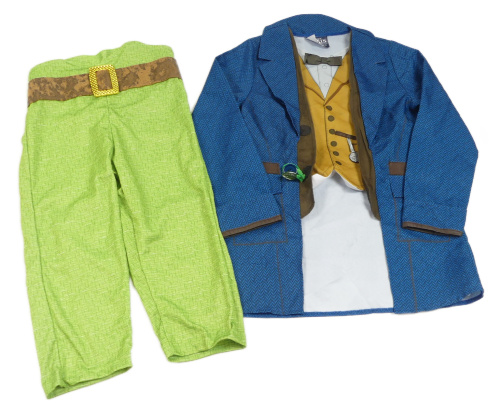 Kockovaným - 2set - Petrolejovo-biele sako s vestou + zelené vzorované crop nohavice