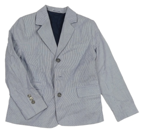 Tmavomodro-biele pruhované spoločenské sako