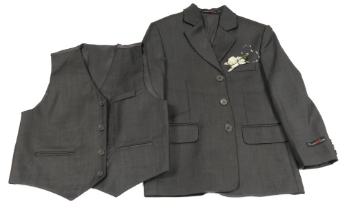 2set - Antracitové spoločenské sako s květem + vesta