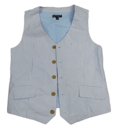 Nové - Světlemodro-biela prúžkovaná spoločenská vesta Howick