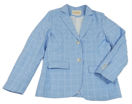 Světlemodro-biele kockované slávnostné sako
