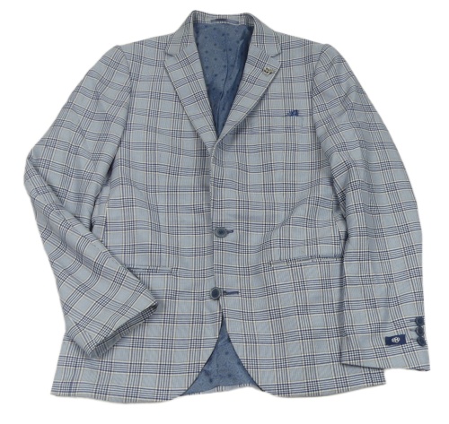 Modro-tmavomodro-bielo-hnedé kockované vzorované sako
