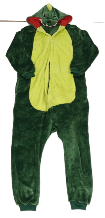 Kockovaným - zelená plyšová kombinéza s ocasem a kapucí - dino