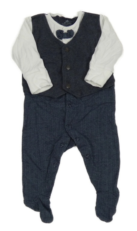 Tmavomodro-modro-biely vzorovaný slávnostný overal s melírovanou vestou a motýlkom Next