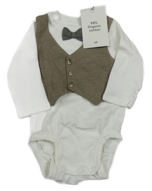 Nové - biele body s našitou hnědou vestou a motýlkom H&M
