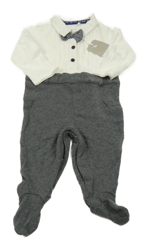 Nové - tmavošedo-biely melírovaný slávnostný overal s motýlkom a golierikom Tu