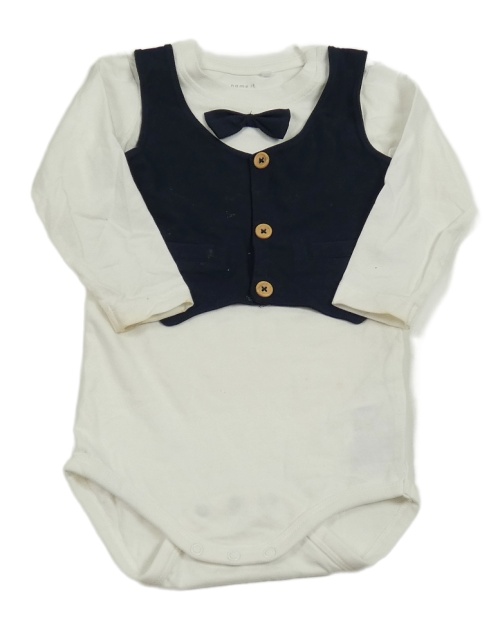 Biele slávnostné body s tmavomodrou vestou a motýlkom name it.