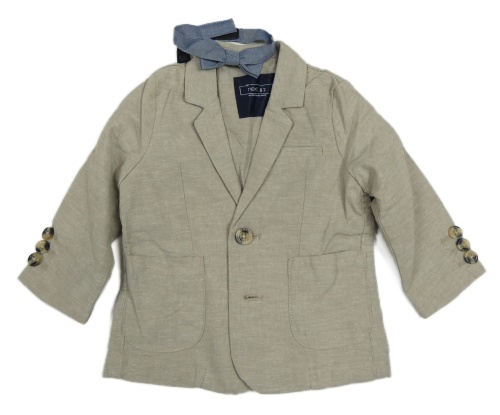 2 set - béžové ľanové sako + modrý motýlok Next