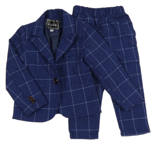 2set - Tmavomodro-modré kockované slávnostné sako + nohavice